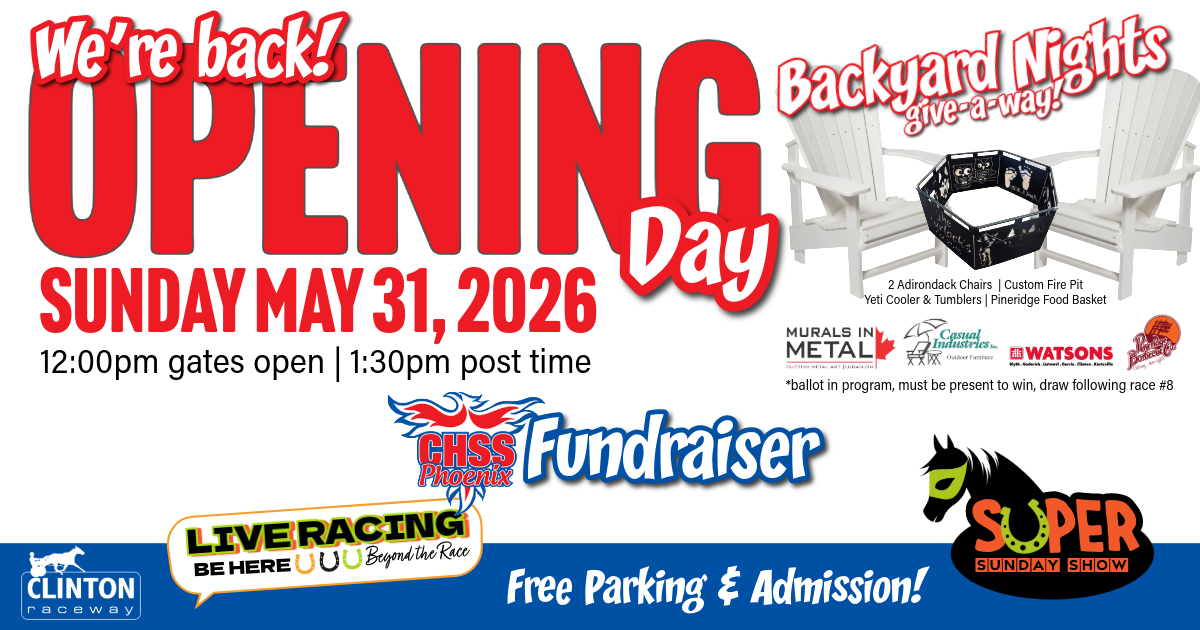 Clinton ON. - Perhaps it’s the longer days, the low setting sun, the smell of fresh cut grass or the feel of the warm breeze that remind you summer is just around the corner. For many that reside in the quaint, Southern Ontario town of Clinton, it’s the sound of thundering hooves, the echo of the announcer spanning across the ½ mile track and the resounding cheers at the finish line as the longshot surges at the wire.