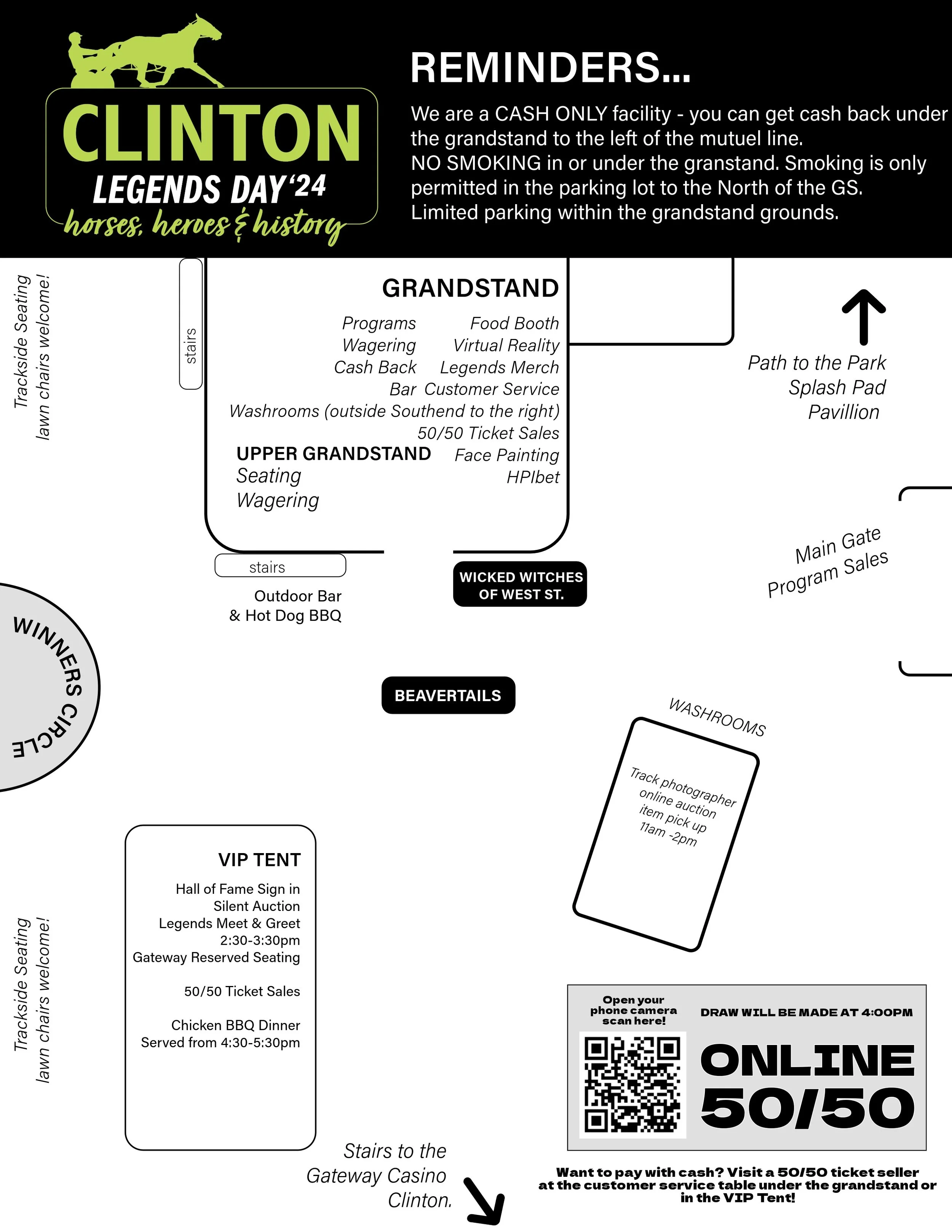 CASH ONLY (programs, wagering, bar, 50/50, food booth, merchandise etc.)
